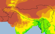 Digital grid dataset of monthly mean temperature (July) for the period of 1950-2000 of Hindu Kush Himalayan (HKH) Region. The dataset is derived from WorldClim (http://www.worldclim.org/), and major climate databases compiled by the Global Historical Climatology Network (GHCN), the FAO, the WMO, the International Center for Tropical Agriculture (CIAT), R-HYdronet. Monthly mean temperature data set consists of 12 raster files, one for each month, showing mean values derived from monthly temperature readings. The data layers were generated through interpolation of average monthly climate data from weather stations on a 30 arc-second resolution grid.